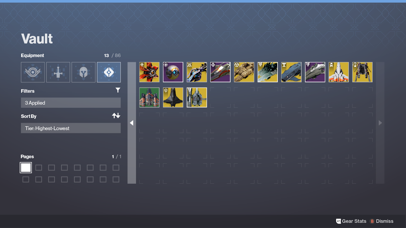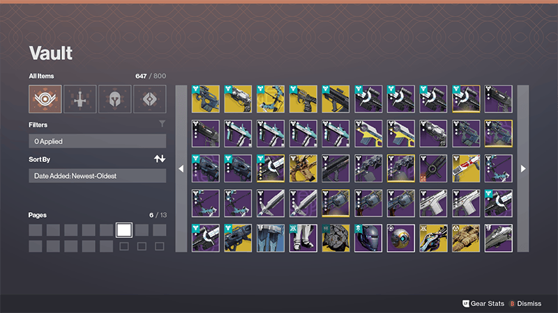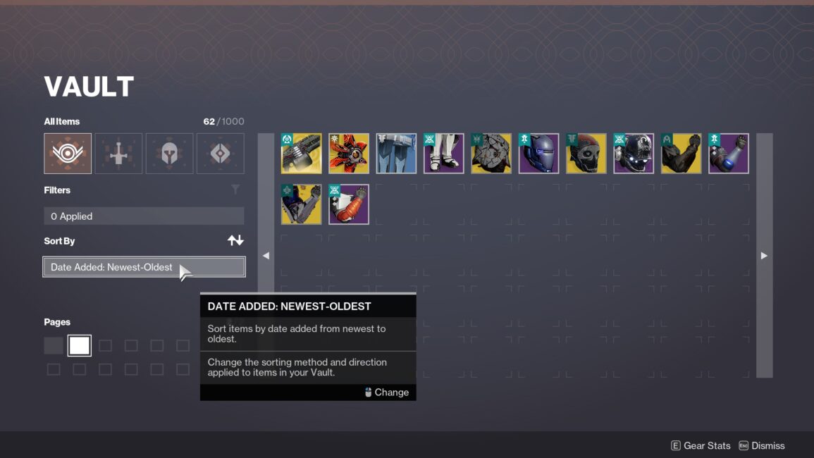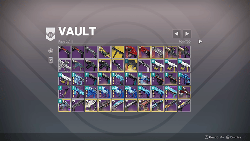 A new form of navigation in Destiny, the Direct Select grid allows players to jump to any page in their vault with one click.