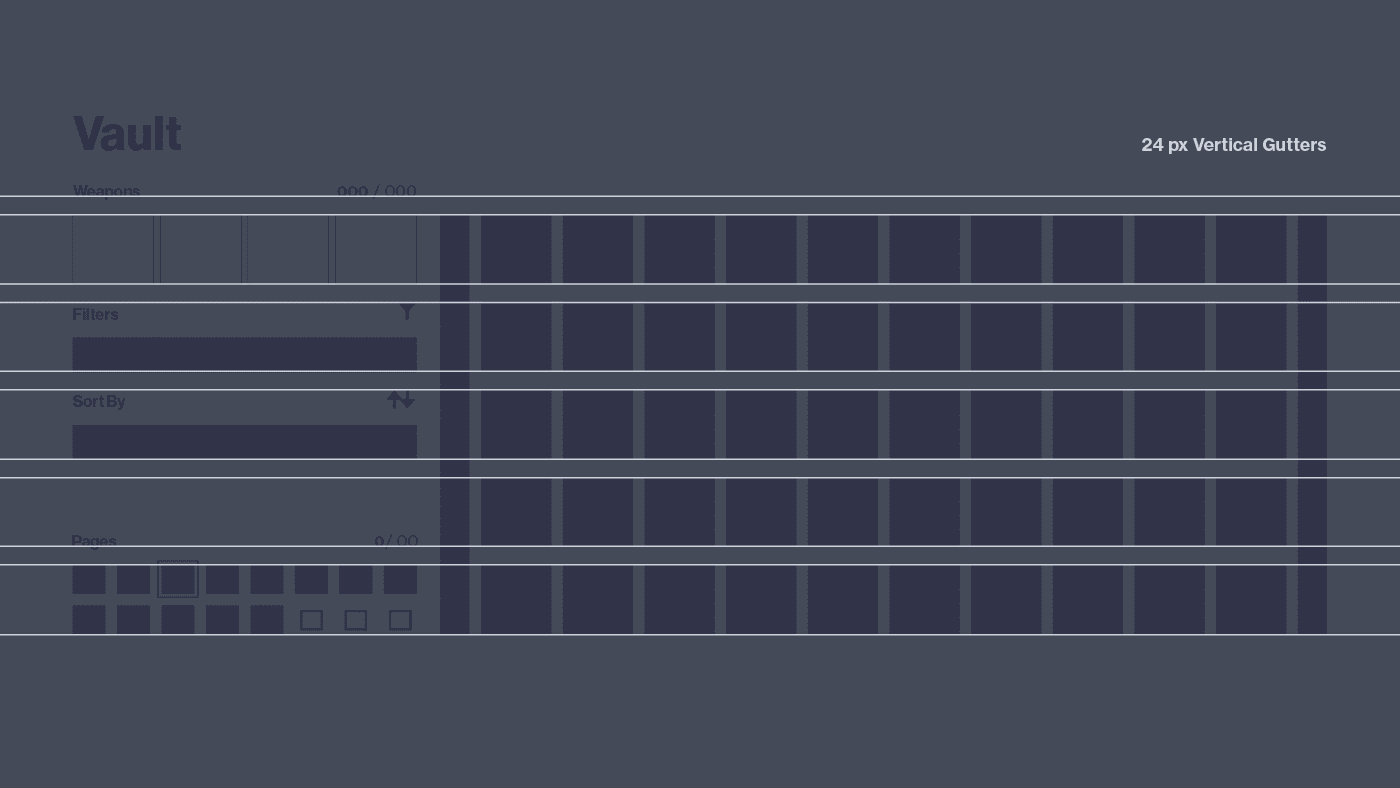 Patterns along the top of the Vault were derived from existing item iconography and built within a consistent grid.